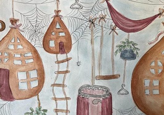 We worked with pencil and watercolor to explore form, light, and texture — drawing leaves, natural objects, and simple still lifes.