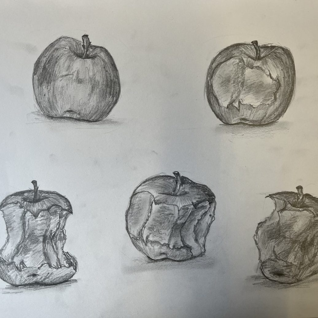 Below is a glimpse into my sketchbook from art class. It doesn’t include all of my drawings, but it features a selection of them. My hope is that by the end of these five years, it will be filled with many more creations.
